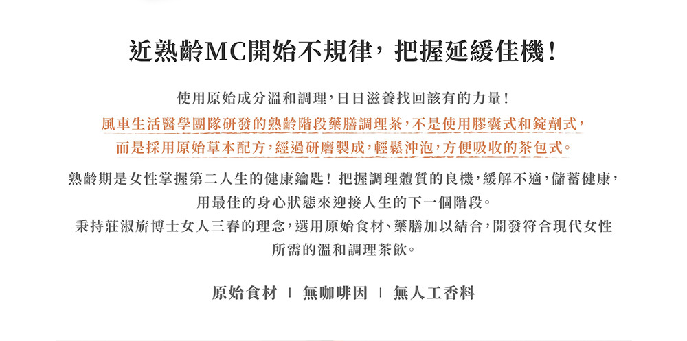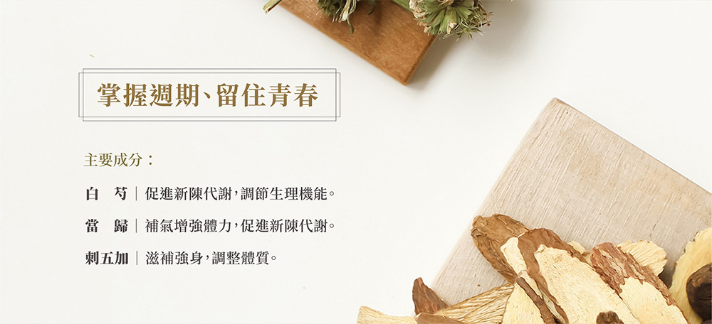 -嚴選滋養聖品〈白芍、當歸、刺五加〉而製,找回主控權